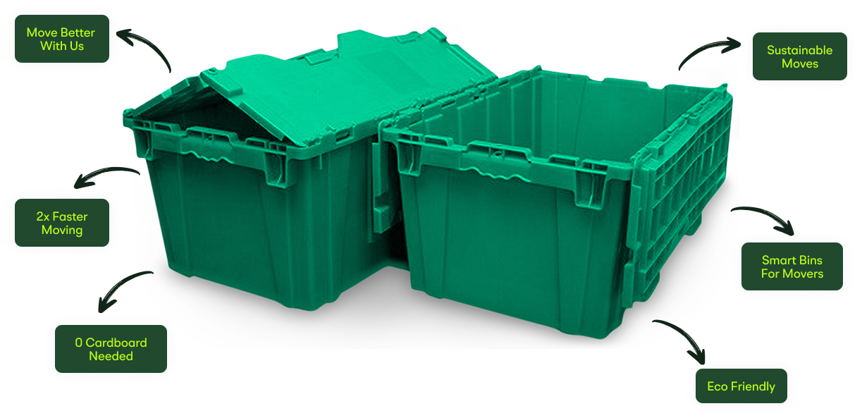 Reusable boxes, doorstep delivery, and pickup when you’re done, moving without the landfill. Save time, money, and the planet.